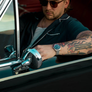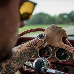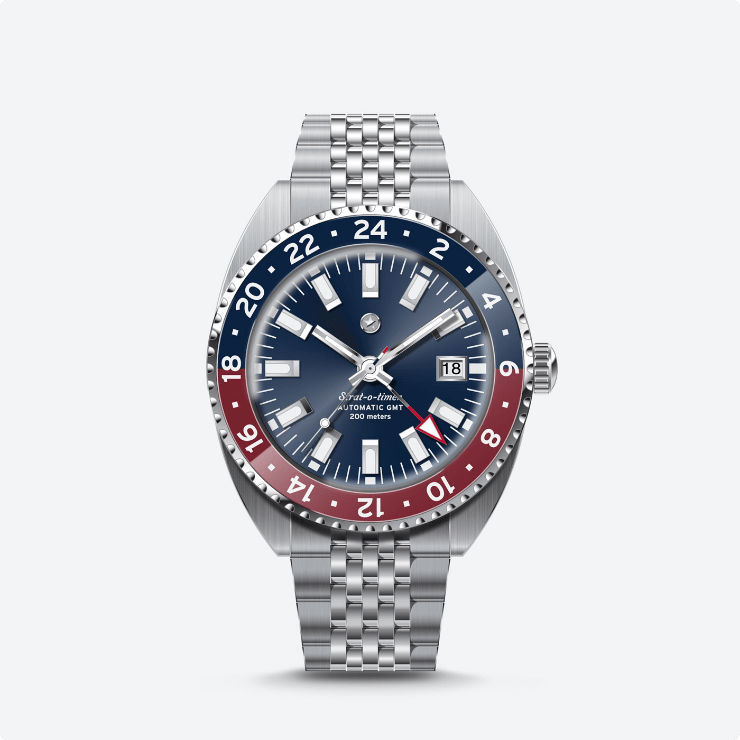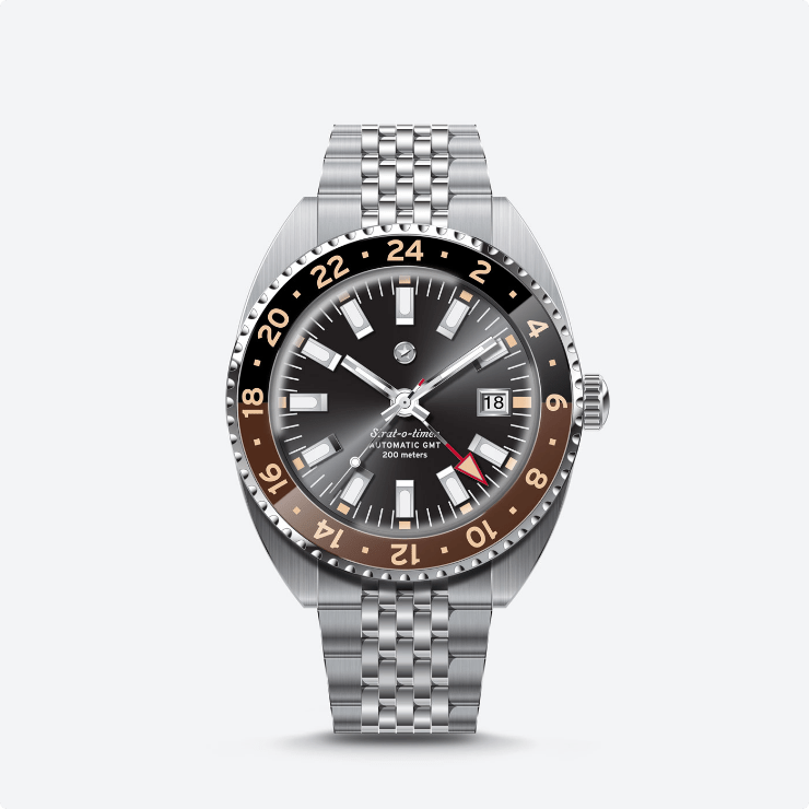 The Strat-o-timer GMT checks every box. Loaded with top of the line specifications and completely designed at our studio in Texas, this watch was held to the highest of standards.
