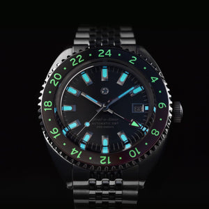 Seven layers of Swiss Super-LumiNova®. To increase low-light legibility, Swiss Super-LumiNova® has been added along the bezel, dial, and hands. The bezel has 7 layers of printed lume and the indices are filled with lume for a deeper, longer lasting glow.