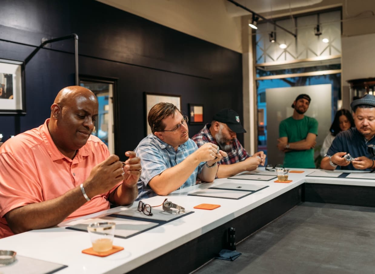 Strat-o-timer GMT First Look Event. The prototypes were revealed at our studio in Dallas, Texas among a group of YouTubers and enthusiasts from the watch community. The excitement was high as the prototypes were passed around.