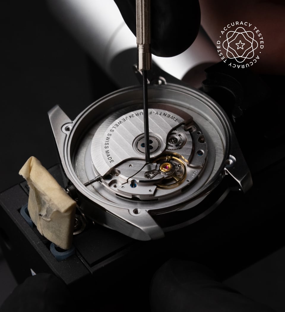 Every Pursuit Pilot is carefully hand-assembled by watchmakers in the United States of America. Bringing watch assembly closer to home allows full ownership over quality control and ensures that each watch upholds the high standards that only Jack Mason can certify.