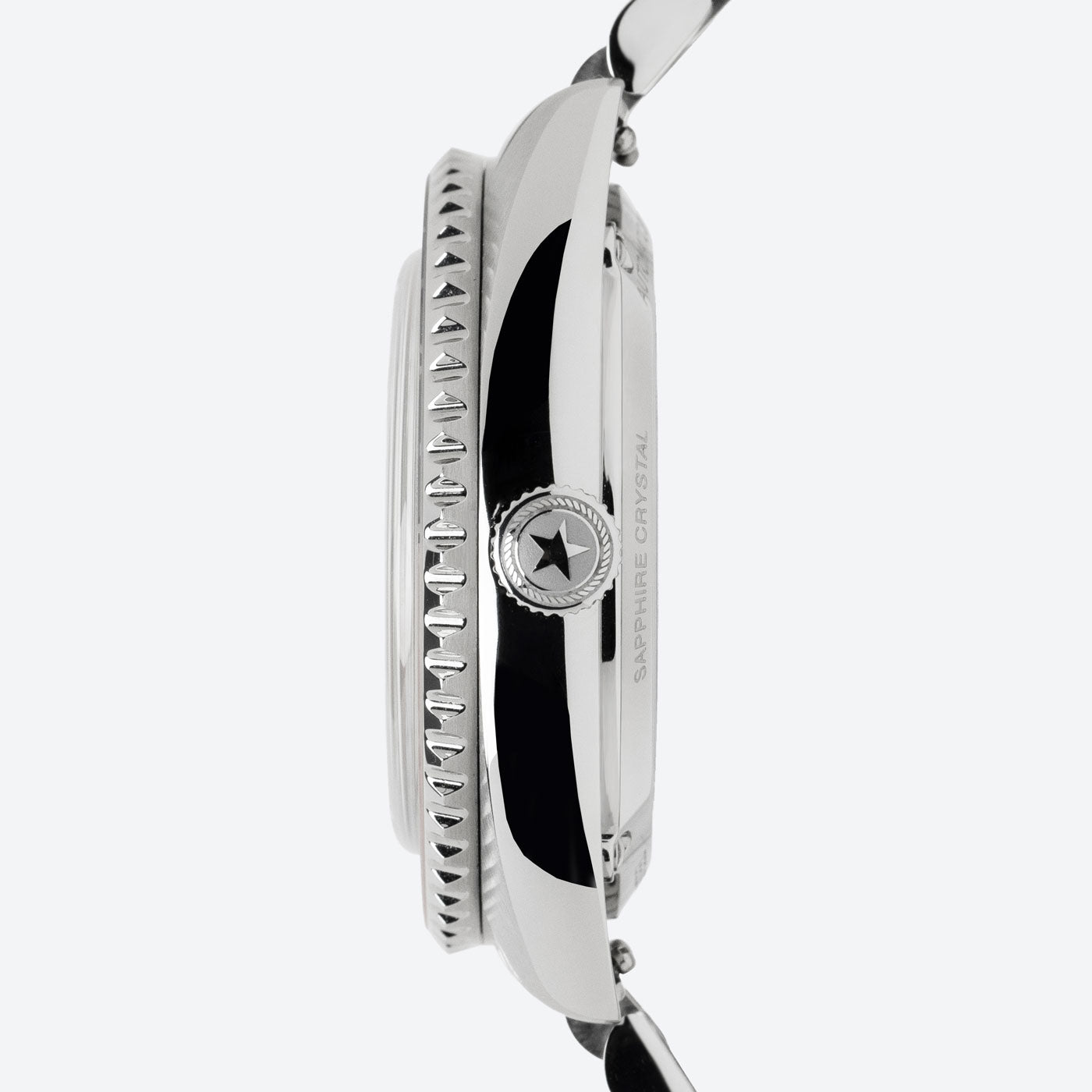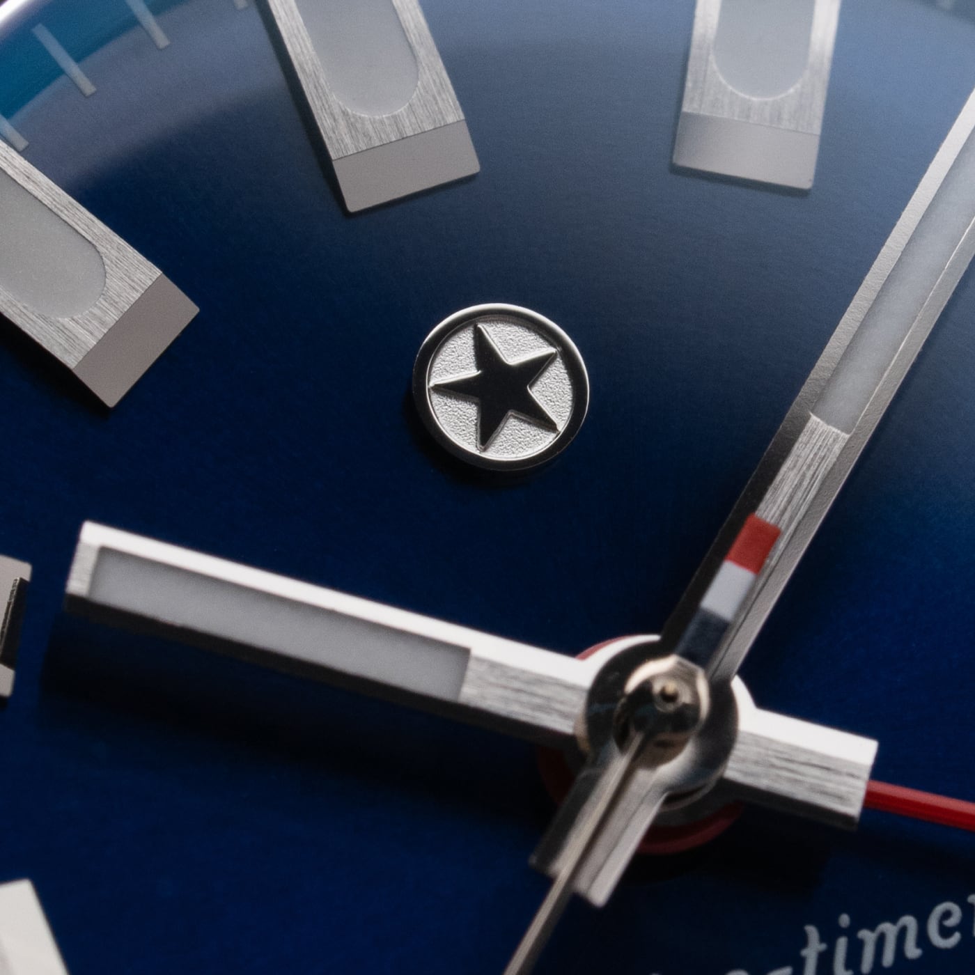 The Strat-o-timer GMT celebrates one of the most iconic watches in history. Housing the Miyota 9075 automatic GMT movement, the Strat-o-timer features jump hour hand making it a traveler's GMT. The bezel features a ceramic insert with Superluminova markings. With a vision of becoming a legacy brand in our home state of Texas, the Strat-o-timer is assembled, and the movement regulated, in the USA.