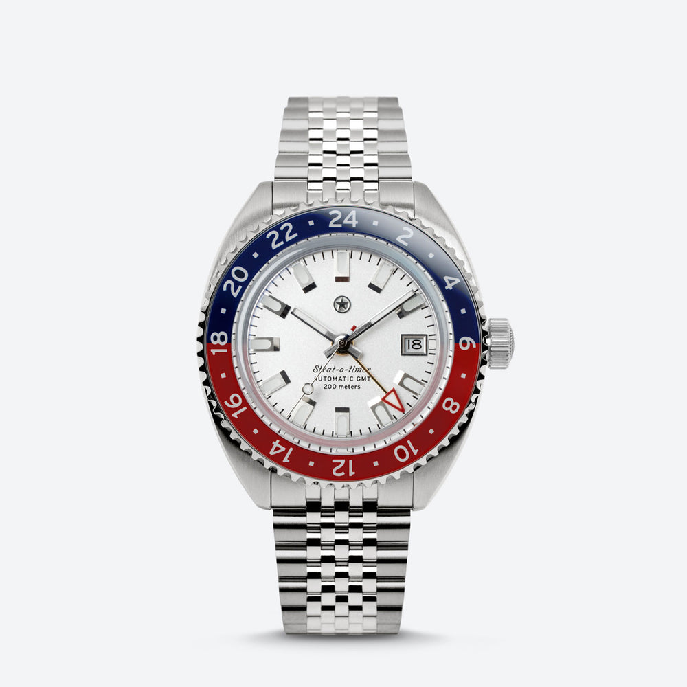 Be one of 100 enthusiasts in the world to have this unique Strat-o-timer GMT in red, white, and blue.